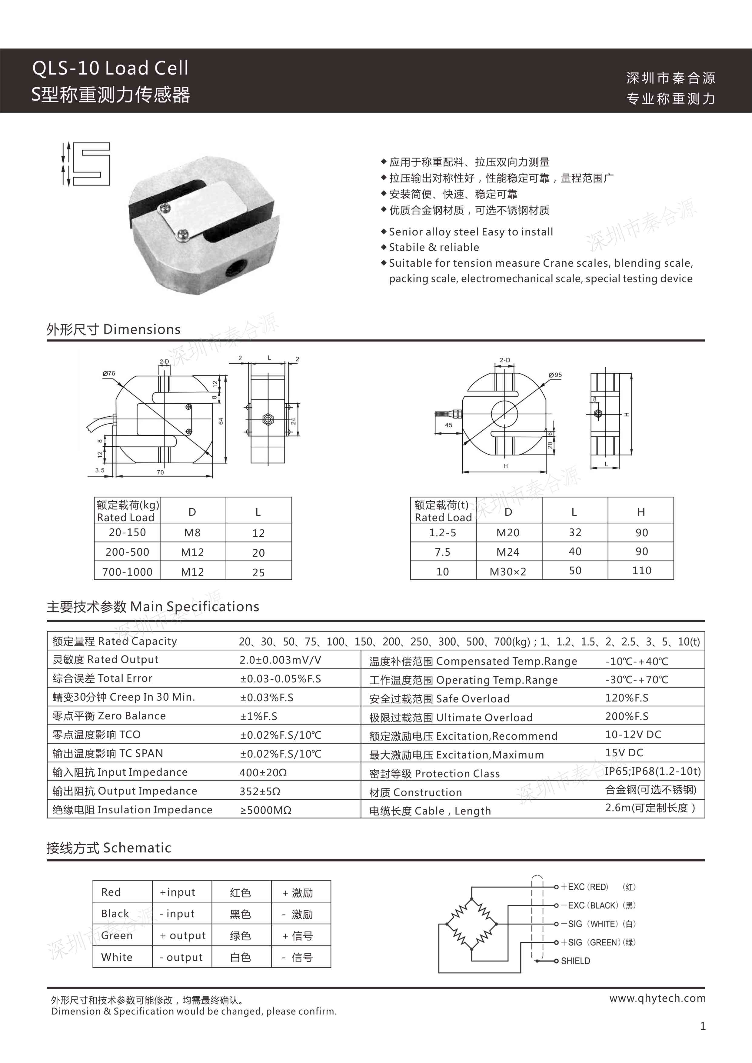 秦合源S型測力傳感器,可以同時測量推拉兩個方向的力,此款傳感器精度高、安裝簡單、穩(wěn)定性好、性價比高。常規(guī)模擬傳感器輸出信號(靈敏度)為mV信號(0.5mV/V-3mV/V),信號變送器(放大器)可以接收mV信號,同時把傳mV信號放大為電壓信號(0-5V、0-10V)或者電流信號(4-20mA、0-20mA),同PLC對接。