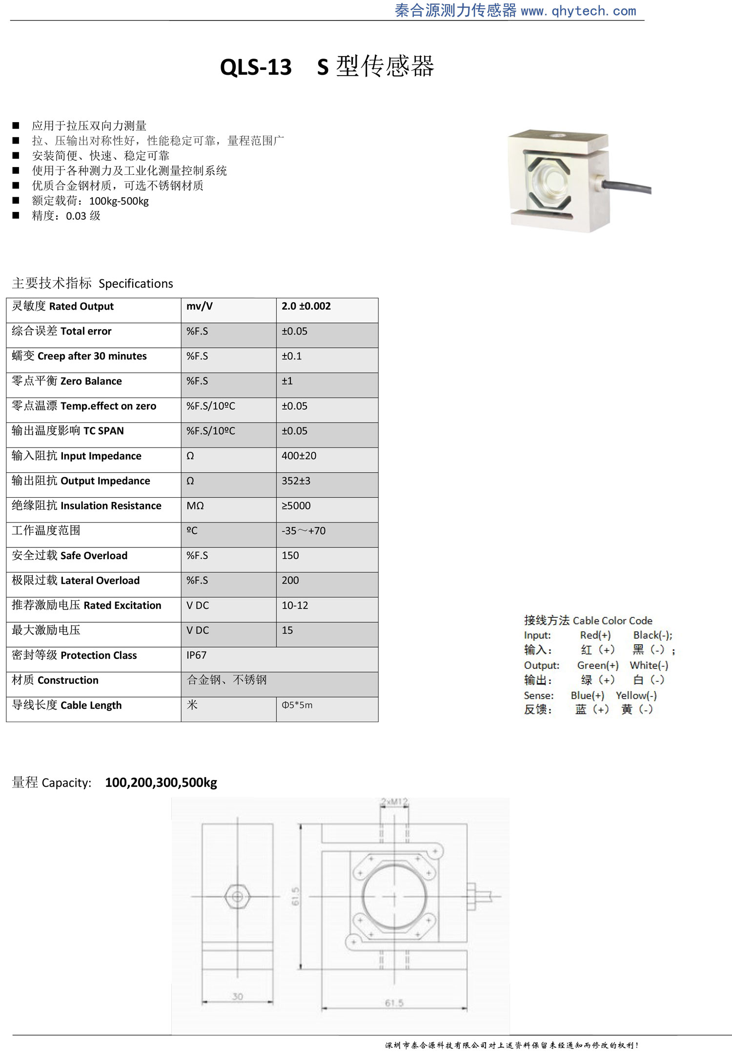 產品名稱:QLS-13 雙向測力傳感器100kg-500kg