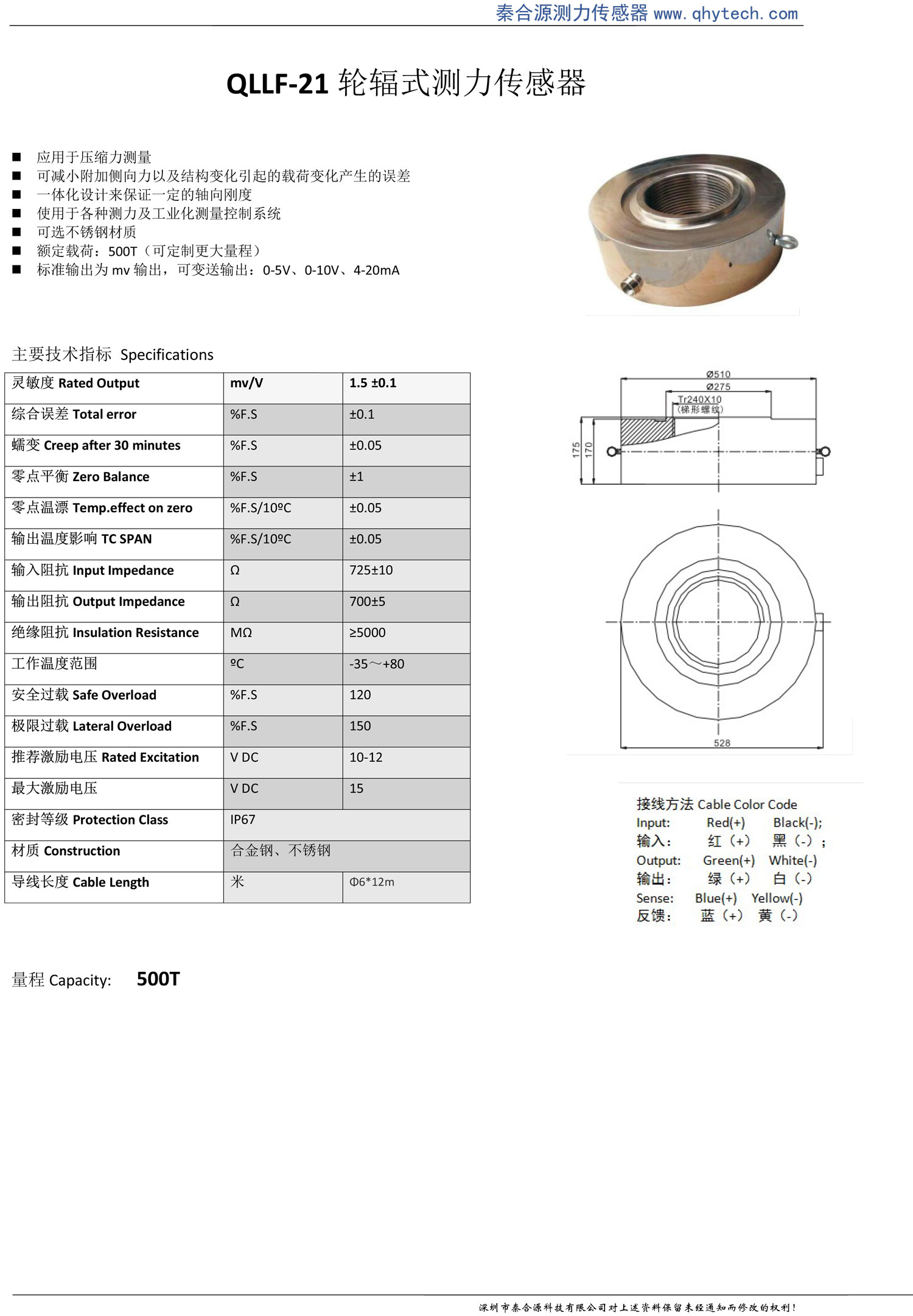 產品名稱:QLLF-21輪輻式測力傳感器(0-500T)壓力