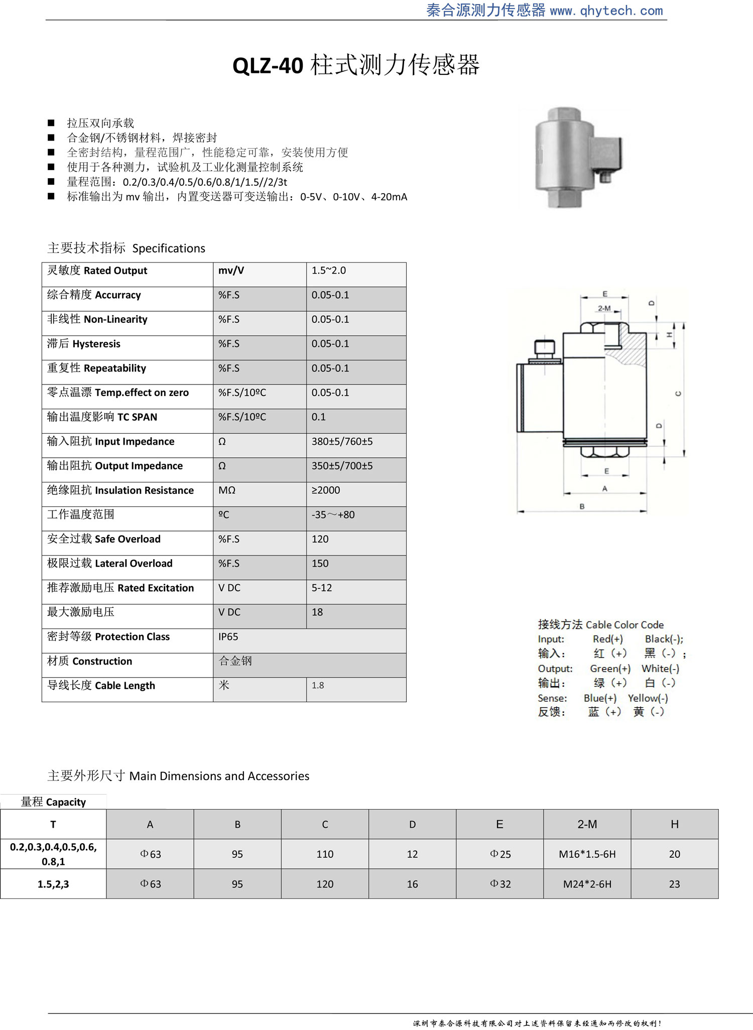 產品特點: 拉壓雙向承載,合金鋼/不銹鋼材料,焊接密封,全密封結構,量程范圍廣,性能穩定可靠,安裝使用方便,標準輸出為mv輸出,內置變送器可變送輸出:0-5V、0-10V、4-20mA;