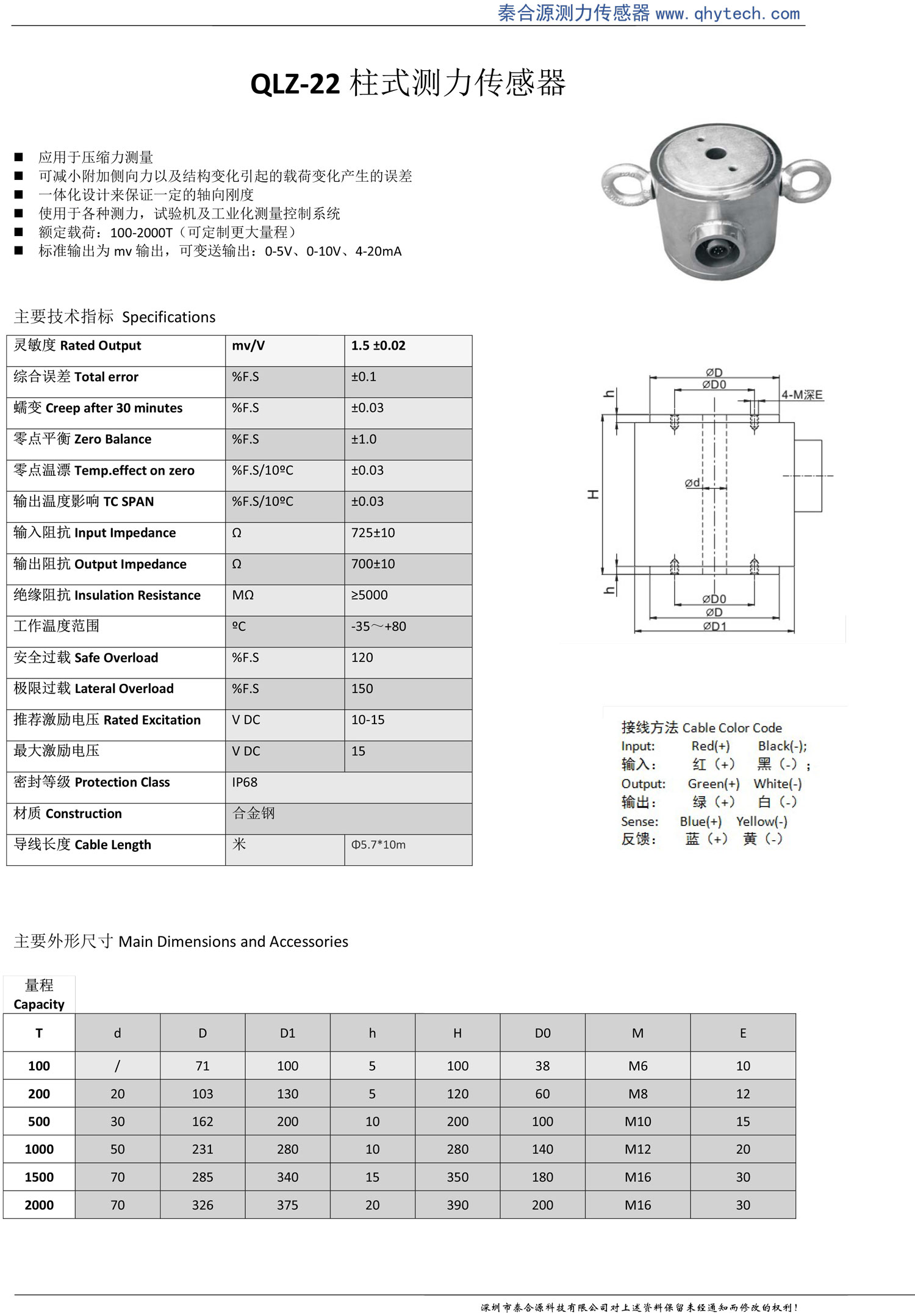 產(chǎn)品特點(diǎn): 用于壓縮力測量 可減小附加側(cè)向力以及結(jié)構(gòu)變化引起的載荷變化產(chǎn)生的誤差 一體化設(shè)計(jì)來保證一定的軸向剛度 使用于各種測力,試驗(yàn)機(jī)及工業(yè)化測量控制系統(tǒng) 額定載荷:100-2000T(可定制更大量程) 標(biāo)準(zhǔn)輸出為mv輸出,可變送輸出:0-5V、0-10V、4-20mA;