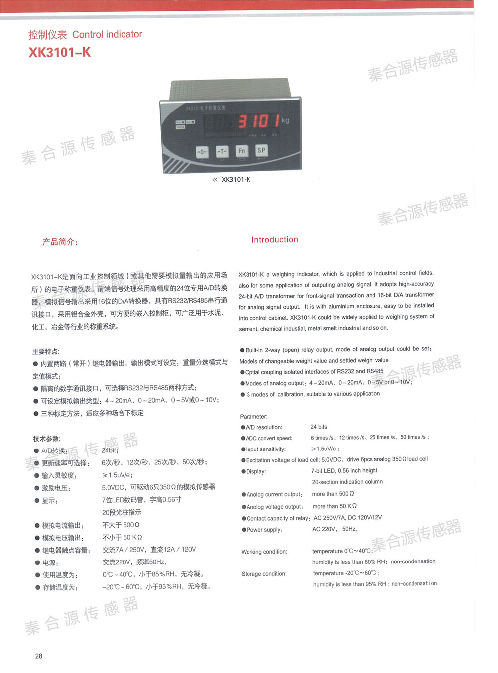 產品名稱:XK3101-K高精度稱重儀表
