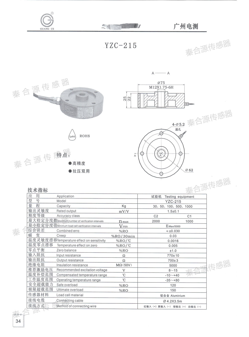 廣測輪輻式傳感器YZD-215(30-1000kg)