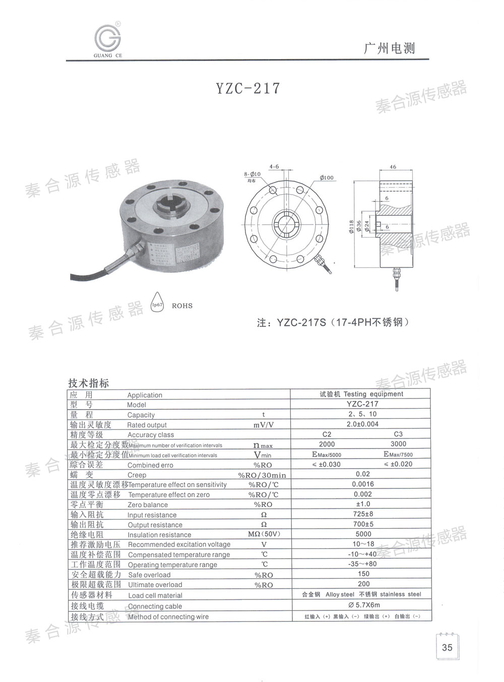 廣測傳感器YZC-217(2-10T)