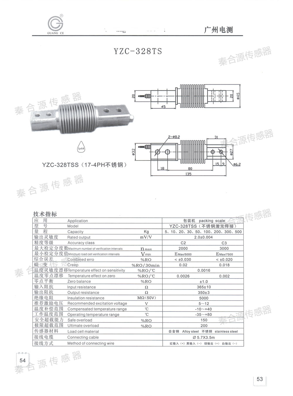 產品名稱:廣測波紋管稱重傳感器YZC-328TS(5-500kg)