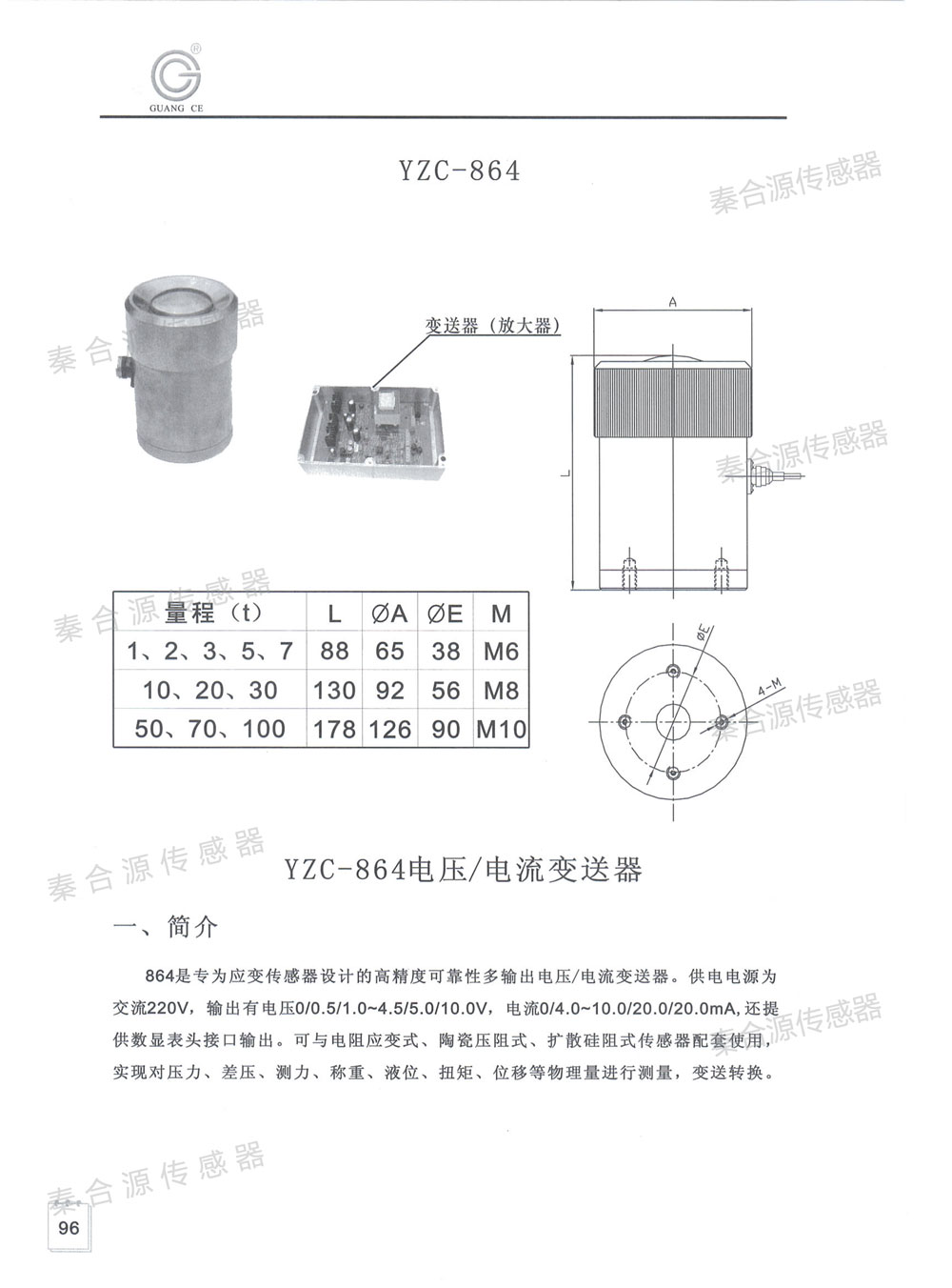 產品名稱:廣測稱重傳感器YZC-864(1-100T)