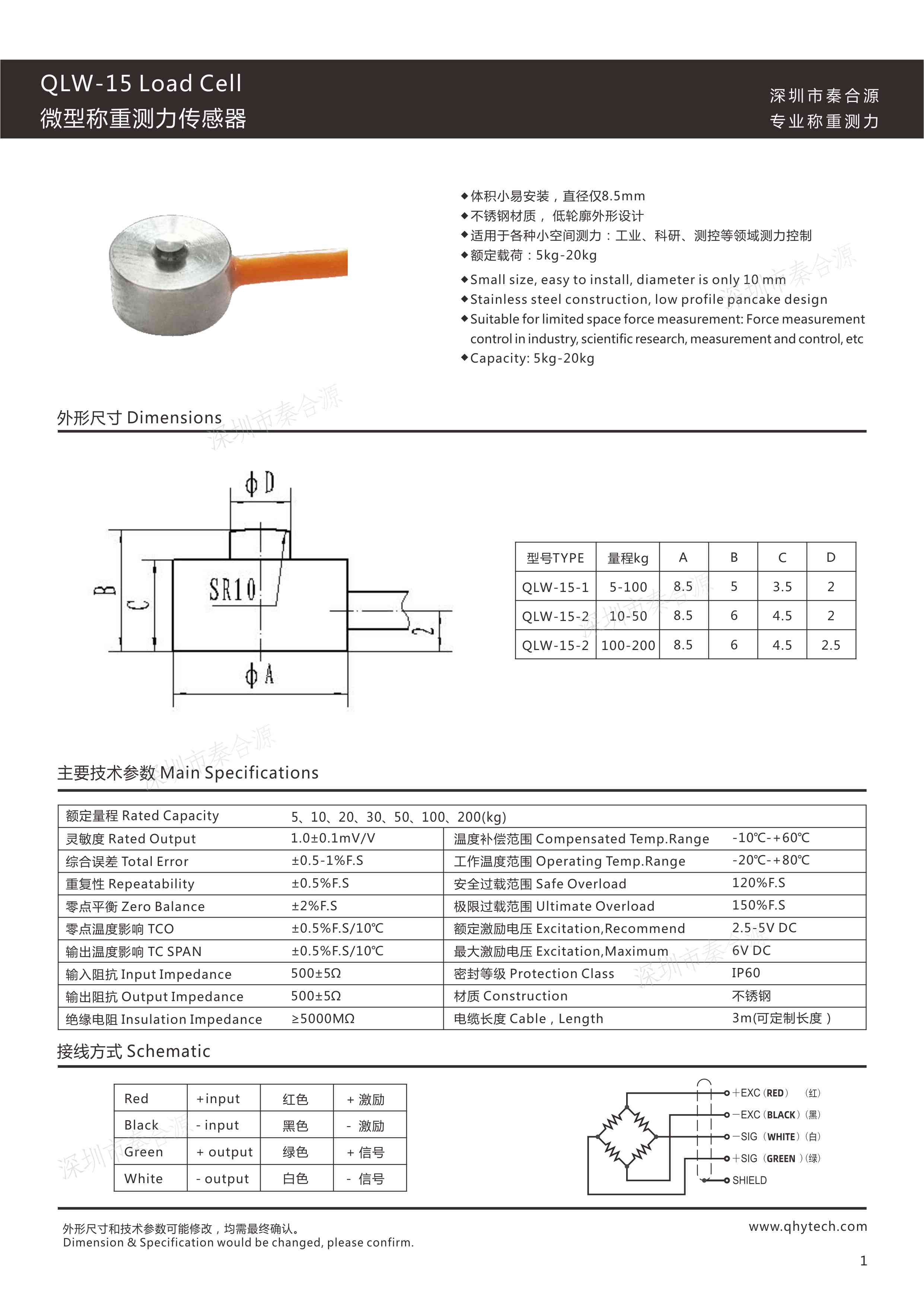 產品名稱:QLW-15超微型測力傳感器(5kg-200kg),φ8.5mm