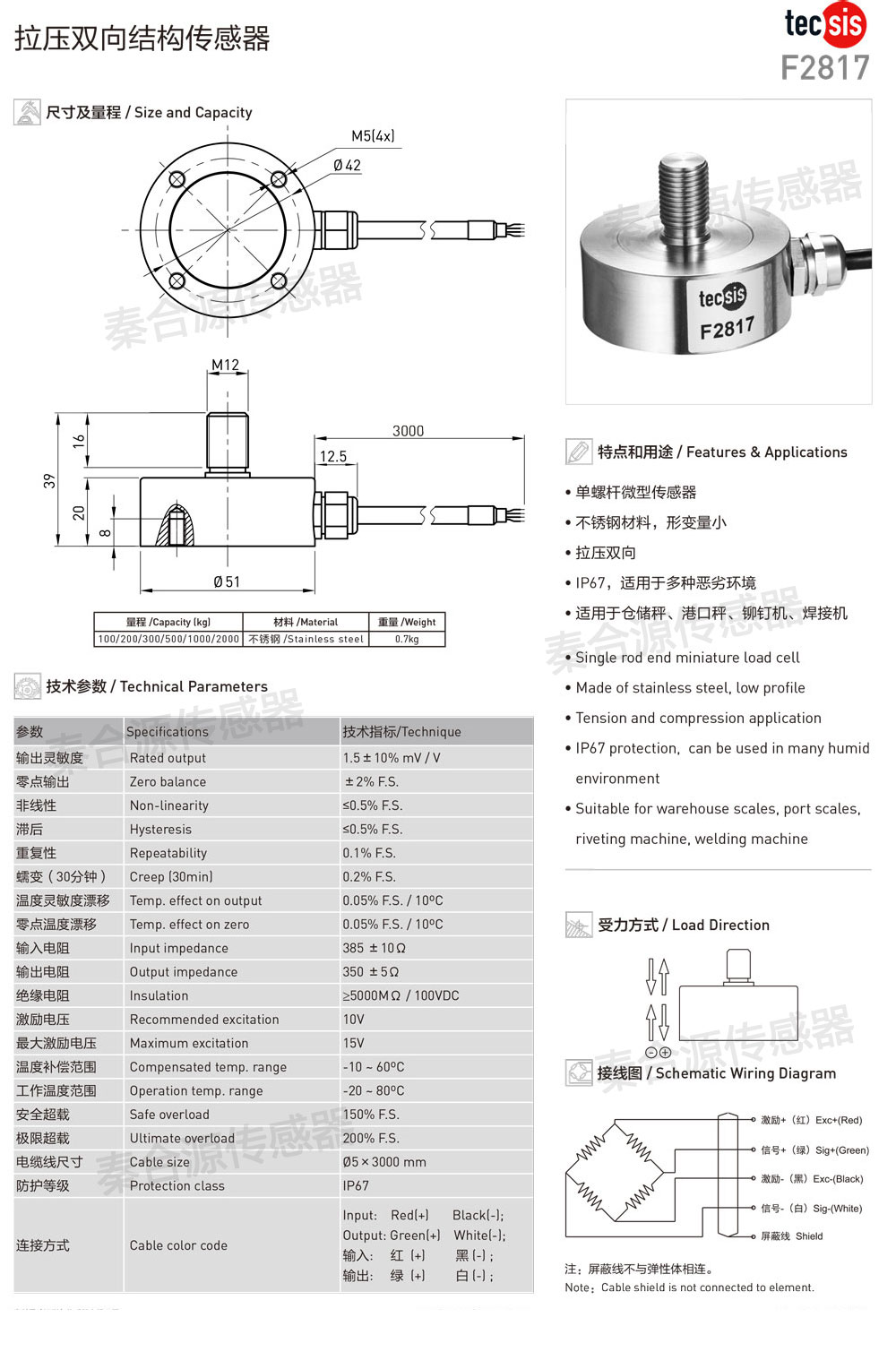 產品特點: 雙螺桿拉壓力傳感器