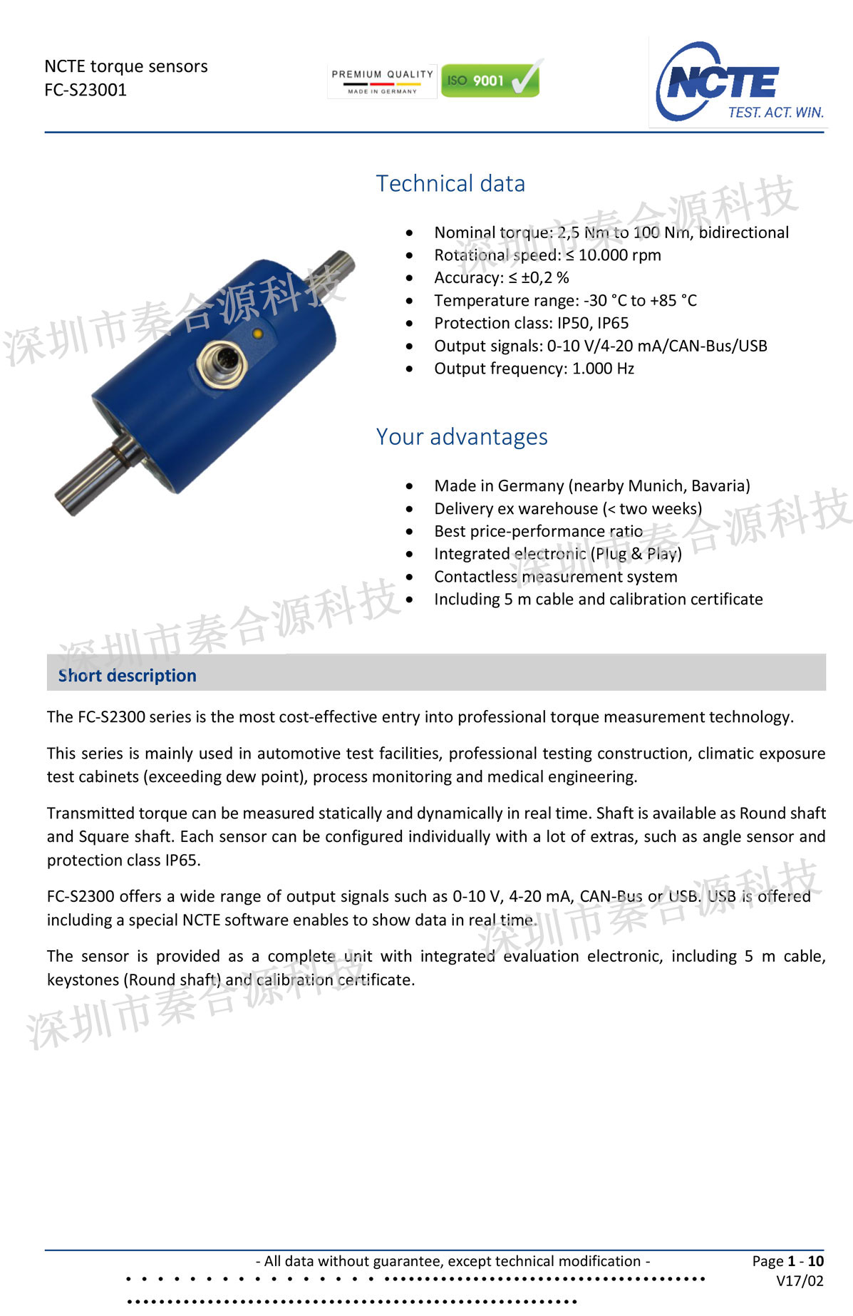NCTE S2300動態扭矩傳感器10000轉高轉速扭矩
