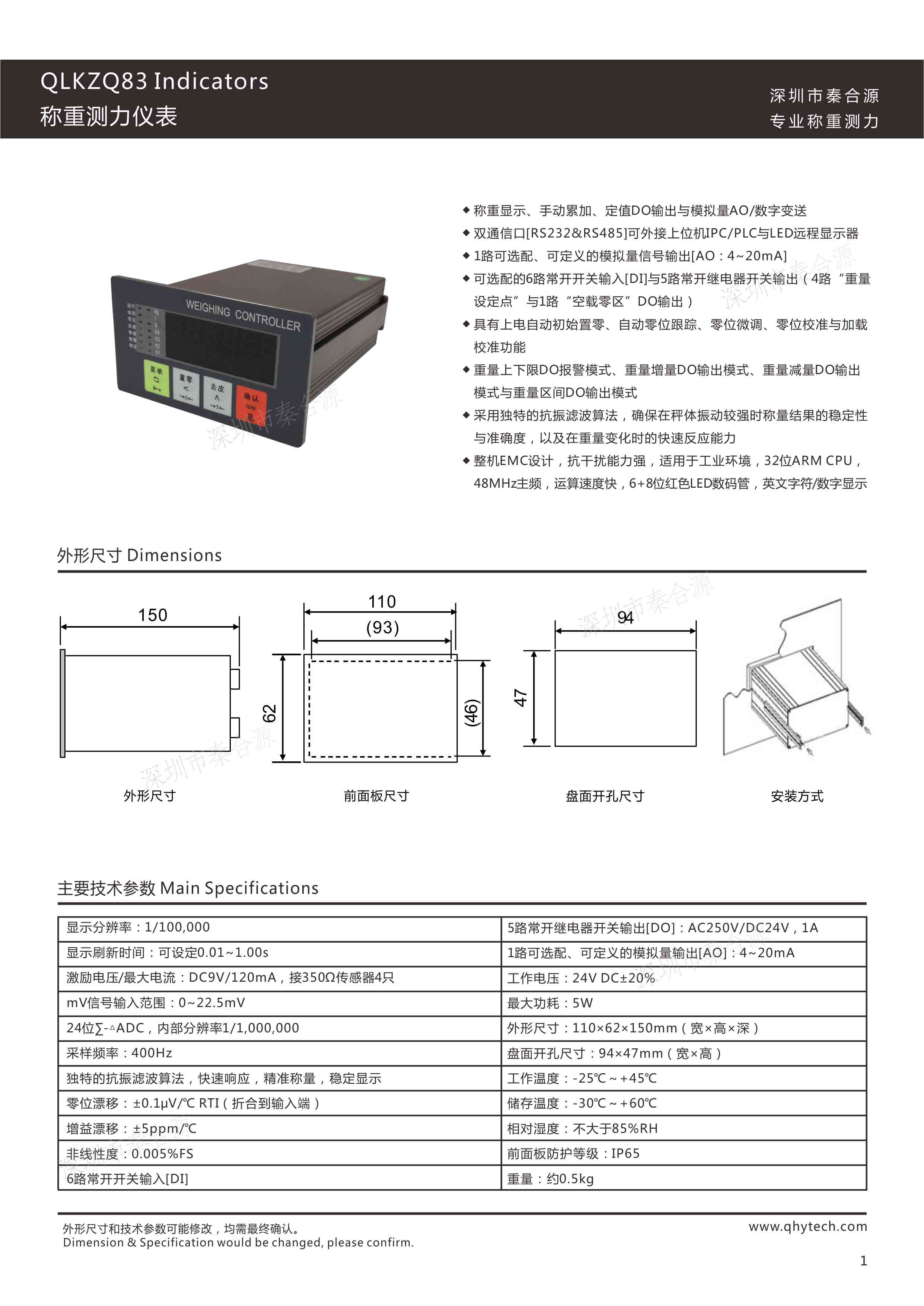 常規模擬傳感器輸出信號(靈敏度)為mV信號(0.5mV/V-3mV/V),稱重儀表(測力儀表)可以即時顯示力值,同時具有信號變送器(放大器)的功能,把mV信號放大為電壓信號(0-5V、0-10V)或者電流信號(4-20mA、0-20mA),同PLC對接。 秦合源經驗豐富、技術精湛,為各行業用戶提供精準測力傳感器及測力方案;
